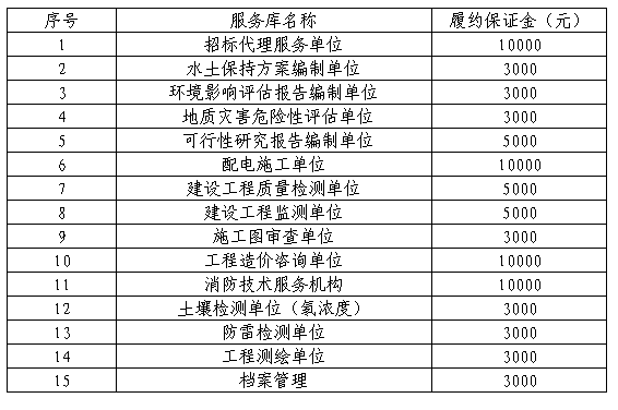 因经营需要,拟成立服务库,现实施2023年服务库招录,本次招录合作期三年,要求如下: 一、本次招录类别及资格条件 本次共招录15个类别服务库,在线成人视频 及下属公司在今后的工作中,在不违反有关法律、法规规定的前提下,结合集团服务库管理办法,从服务库中选择具体的服务单位。满足资格的南平市市属国企单位可直接入库,入库的南平市市属国企单位家数包含在对应服务库家数内。若入围家数少于3家不能形成有效竟争的,集团公司将从库外另行再邀请相应服务单位参与比选。本次具体类别及资格条件要求如下: 1. 招标代理服务单位(10家) 具备提供工程招标代理服务的企业法人单位。且根据《闽建筑函[2018]26号》的规定投录人应当取得公司法人《营业执照》(登记营业范围须包含工程招标代理业务)且完成并通过福建省住房和城乡建设政务服务系统登记企业基本信息。(提供营业执照复印件加盖公章、福建省住房和城乡建设政务服务系统登记证明材料加盖公章) 2. 水土保持方案编制单位(5家) 具备建设项目水土保持方案编制水平评价证书 1星及以上资质。(提供营业执照和资质证书复印件加盖公章) 3. 环境影响评估报告编制单位(5家) 具备环境影响评估报告编制能力,且在环境影响评价信用平台登记的单位。同时不得被列入《建设项目环境影响报告书(表)编制监督管理办法》规定的限期整改名单、环境影响评价失信“黑名单”。(提供环境影响评价信用平台登记证明材料加盖公章、未被列入限期整改名单和环境影响评价失信“黑名单的证明材料) 4. 地质灾害危险性评估单位(5家) 具备自然资源主管部门颁发的乙级及以上地质灾害危险性评估单位资质。(提供营业执照和资质证书复印件加盖公章) 5. 可行性研究报告编制单位(6家) 具备可行性研究报告编制能力,且应是通过全国投资项目在线审批监管平台备案的工程咨询单位(建筑工程、市政公用工程)专业。(提供通过全国投资项目在线审批监管平台备案相关信息截图、营业执照复印件、资质证书复印件加盖公章) 6. 配电施工单位(5家) 具备建设行政主管部门颁发的电力工程施工总承包或送变电工程专业承包三级及以上资质,并已通过南平电业局入网审查。(提供资质证书复印件、通过南平电业局入网审查证明材料加盖公章) 7. 建设工程质量检测单位(6家) 具备建设行政主管部门颁发的建设工程质量检测资质。(提供营业执照复印件和资质证书复印件加盖公章) 8. 建设工程监测单位(6家) 具备建设行政主管部门核发的合格有效的工程勘察专业类(岩土工程物探测试检测监测)乙级及以上资质或工程勘察综合甲级资质。(提供营业执照复印件和资质证书复印件加盖公章) 9. 施工图审查单位(5家) 具备建设行政主管部门颁发的二类及以上施工图审查资质证书。(提供营业执照复印件和资质证书复印件加盖公章) 10.工程造价咨询单位(6家) 具备提供工程造价咨询服务的企业法人单位。且根据《闽建筑函[2021]60号》的规定投录人应当取得具有工程造价咨询经营范围的营业执照且完成并通过福建省住房和城乡建设政务服务系统登记企业基本信息。(提供营业执照复印件、福建省住房和城乡建设政务服务系统截图加盖公章) 11.消防技术服务机构(6家) 符合《应急管理部关于印发〈消防技术服务机构从业条件〉的通知》的消防技术服务机构(建筑消防设施维护保养检测)。(提供营业执照复印件、福建省消防技术服务信息平台的截图证明等相关证明材料加盖公章) 12.土壤检测单位(氡浓度)(5家) 具备市场监督管理部门颁发的具有CMA标志的资质认定证书。(提供营业执照复印件和资质证书复印件加盖公章) 13.防雷检测单位(6家) 具备气象主管机构颁发的雷电防护装置检测资质。(提供营业执照复印件和资质证书复印件加盖公章) 14.工程测绘单位(6家) 具备行业主管部门颁发的工程测绘资质。(提供营业执照复印件和资质证书复印件加盖公章) 15.档案管理(5家) 具备行业主管部门颁发的福建省档案服务机构备案证明(提供营业执照复印件、福建省档案服务机构备案证明材料加盖公章) 二、招录须知: 1. 招录报名时间:2023年07月17日至2023年07月21日止,逾期不予受理。 2. 招录报名:有意向的单位于报名时间将以下资料发至邮箱[email protected] ,否则招录人有权拒绝其报名。 (1)法定代表人身份证明、法定代表人身份复印件加盖单位公章或其授权委托书、被授权人的身份证复印件(加盖单位公章); (2)营业执照(加盖单位公章); (3)附件一(报名函); (4)投录保证金转账凭证加盖公章。 单位负责人为同一人或者存在控股、管理关系的不同单位,不得参加同一类别的同一库项目投录。 3. 投录文件递交方式及递交时间: 递交时间:2023年7月24日,上午8:30-11:30,下午15:15-17:30。 递交地址:福建晖源工程咨询有限公司开标室(福建省南平市建阳区童游大街36-10号高速监理公司办事处对面国家电网旁二楼) 逾期送达或不符合本招录文件要求的文件将被拒绝。 4.开录时间:2023年7月26日上午8:30。 5. 投录保证金: 5.1投录保证金提交金额:每一个服务库人民币叁万元整 (¥30000 元),投录保证金必须从企业账户一次性汇出(以到账时间为准,汇出账户名称与企业名称应一致),否则招录人有权拒绝接收投录人的投录文件。 参加本次招录的南平市市属国企单位均需按招