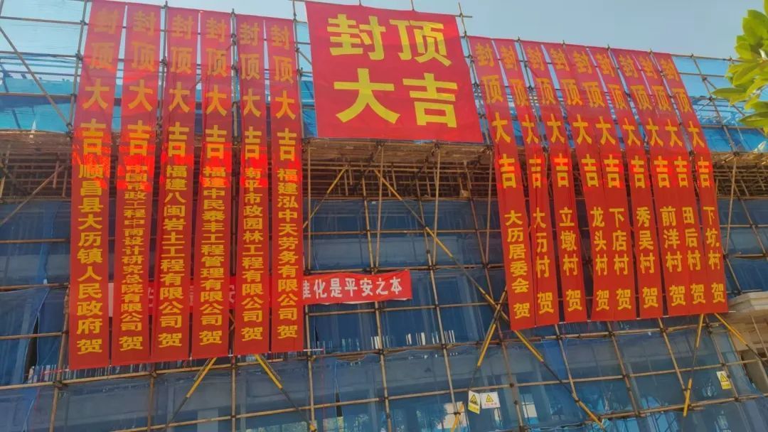 近日,由南平市政园林工程有限公司承建的顺昌县大历镇保障性租赁住房建设项目混凝土主体结构完成封顶。