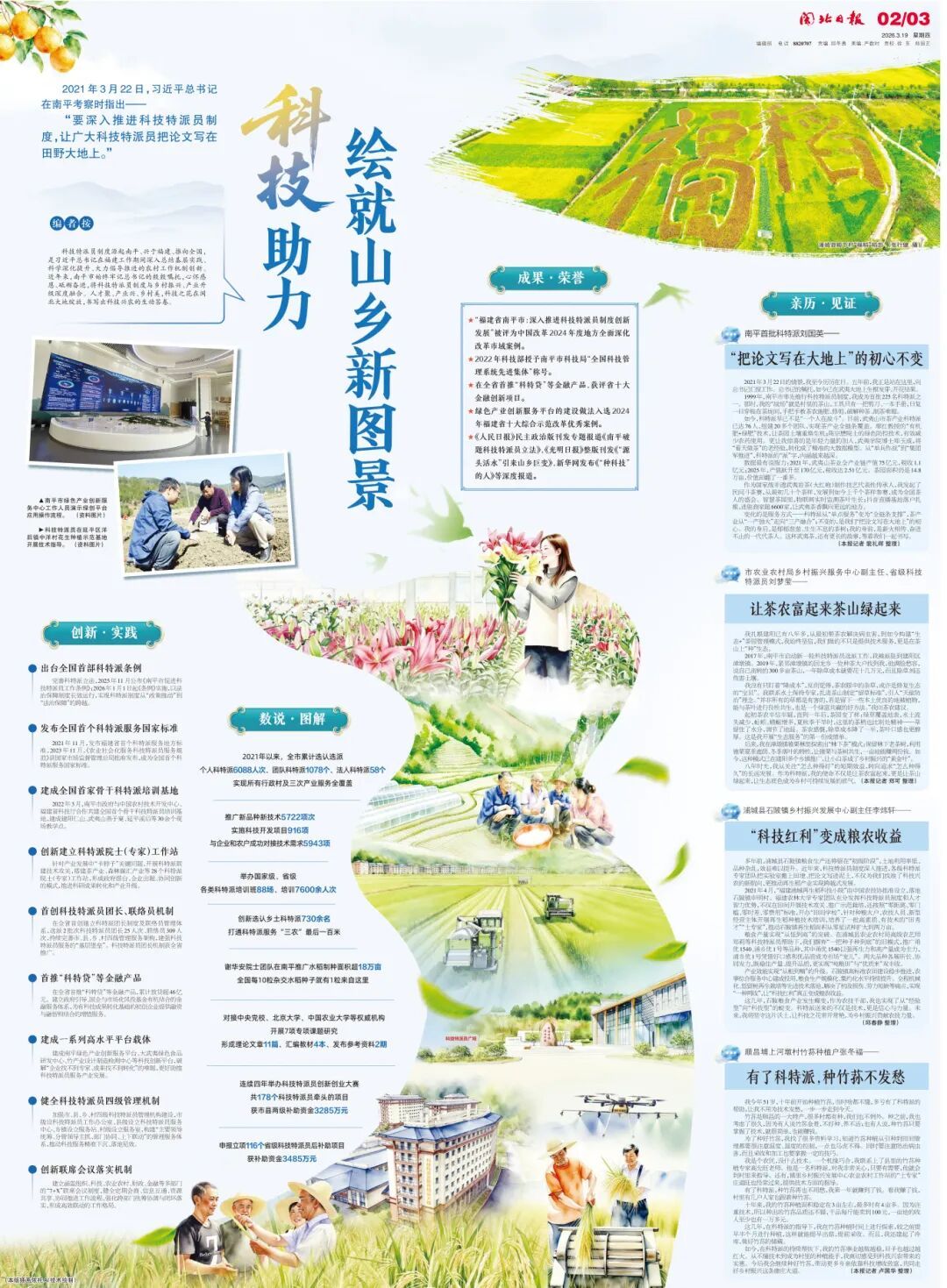 ★《人民日报》民主政治版刊发专题报道《南平破题科技特派员立法》,《光明日报》整版刊发《“源头活水”引来山乡巨变》,新华网发布《“种科技”的人》等深度报道。
